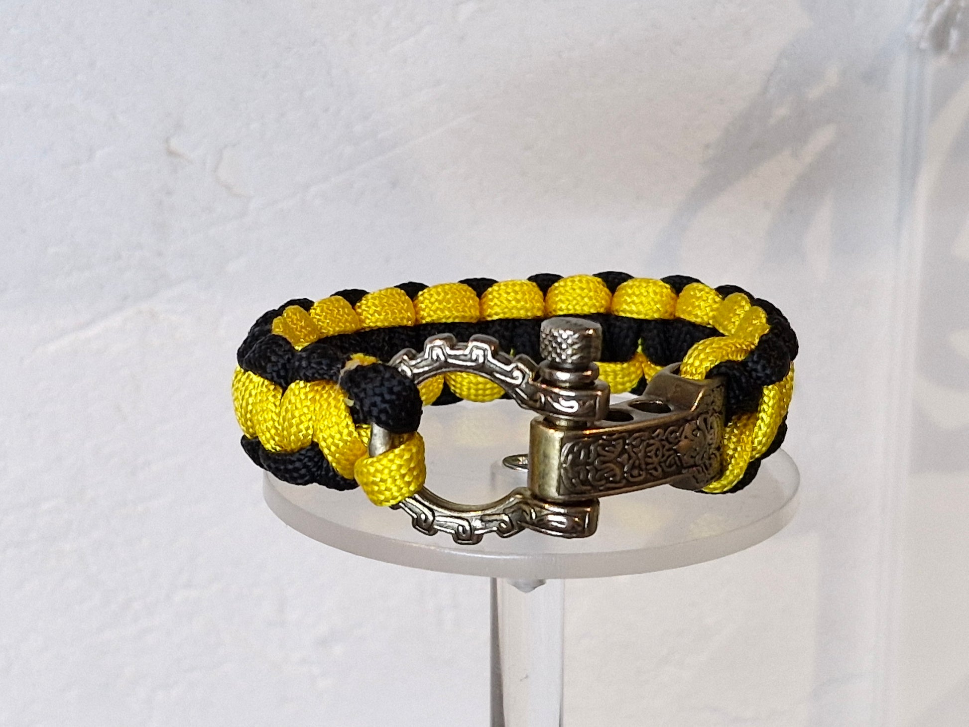 Bracelet Paracorde Biker – Noir & Jaune avec Fermoir Viking